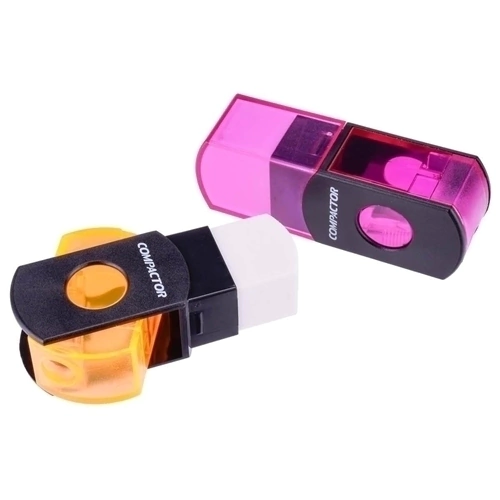 O Apontador 2 em 1 é a novidade da Compactor e tem dupla função. Além de apontar o lápis, o Apontador 2 em 1 vem com borracha macia, fácil de apagar e com menos resíduos. Fabricado na Alemanha, o Apontador 2 em 1 possui lâmina de altíssima qualidade que não enferruja e nem fica cega, trazendo perfeição ao apontar seu lápis. O Apontador 2 em 1 também conta com reservatório para resíduos de pontas que evita sujeira, além de capa protetora para borracha. O Apontador 2 em 1 tem duas opções de cores. Qual é a sua preferida?