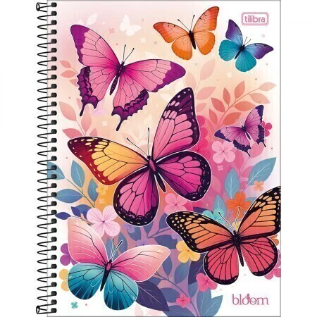 O Caderno Espiral Capa Dura Universitário 1 Matérias Bloom 80 Folhas da Tilibra é perfeito para você que busca uma opção para organização da rotina de estudos com visual que valoriza a beleza e os detalhes coloridos das borboletas.