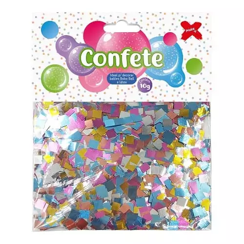 Confete é um tipo de decoração feita de pequenos pedaços de papel metalizado colorido que são jogados no ar ou espalhados sobre uma superfície. Confete é usado em festas, celebrações e eventos especiais, como casamentos, aniversários e carnaval.