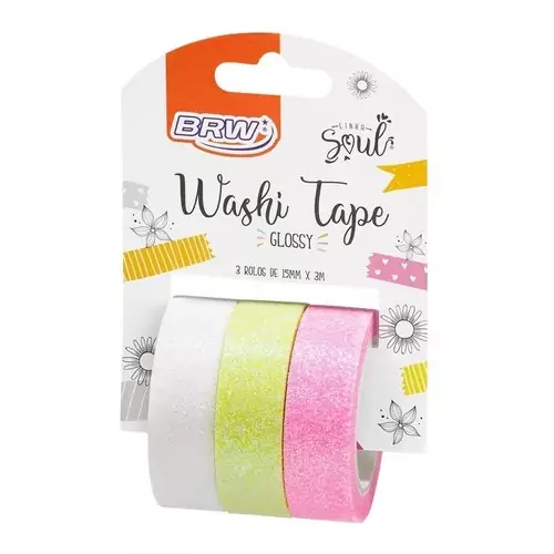 Fita Adesiva Washi Tape Glossy Glitter Brw C/3 Unidades 3m