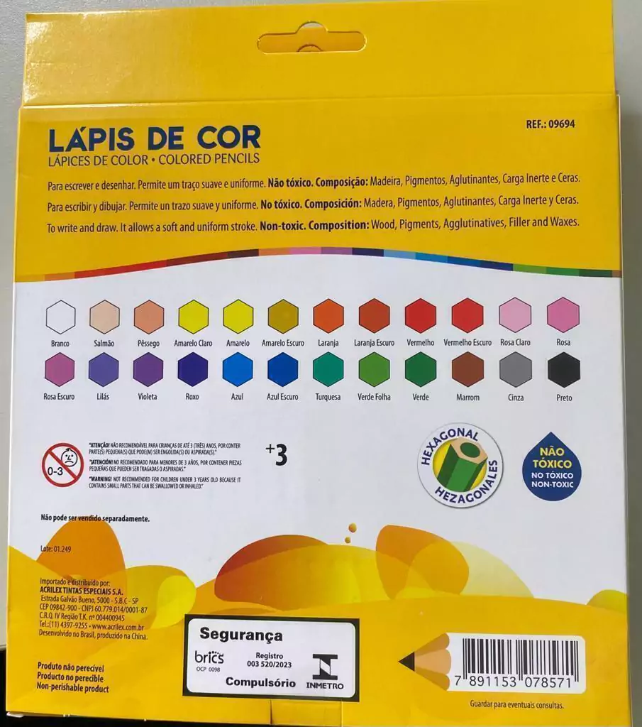 Composição: Madeira, pigmentos aglutinantes, carga inerte e cera.