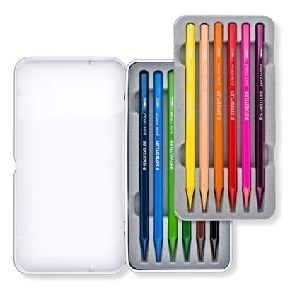 Estojo de metal contendo 12 lápis aquarela em cores sortidas
